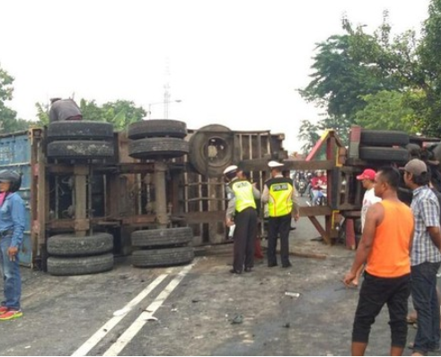 kasat lantas polresta sidoarjo kompol wahyu endrajaya menjelaskan, berawal dari mobil avanza nopol L 1697 HN yang di kemudikan rahmadian charliyan putro 25 tahun warga perum taman sidorejo kecamatan krian melaju kencang dari arah mojokerto – surabaya. di duga pengemudi avanza mengantuk sehingga mobil oleng ke kanan, sementara dari arah yang berlawanan truk trailer nopol DA 1232 L yang di kemudikan catur ariyanto warga sambiroto jombang dengan kecepatan sedang sehingga tabrakanpun tak terhindarkan hingga sebabkan truk terguling melintang dan menutup dua jalur.