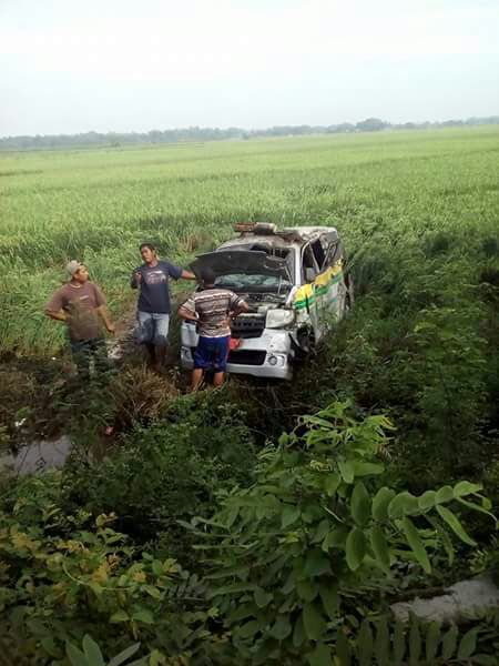 berawal dari kendaraan berjalan melaju dengan kecepatan sedang dari arah selatan ke utara namun sesampai di tikungan dusun ganjul tiba tiba kendaraan oleng dan jatuh ke dalam sawah sehinga mobil mengalami kerusakan yang cukup parah.  beruntung dalam kejadian ini sopir tidak mengalami luka yang cukup serius dan tidak ada korban jiwa.