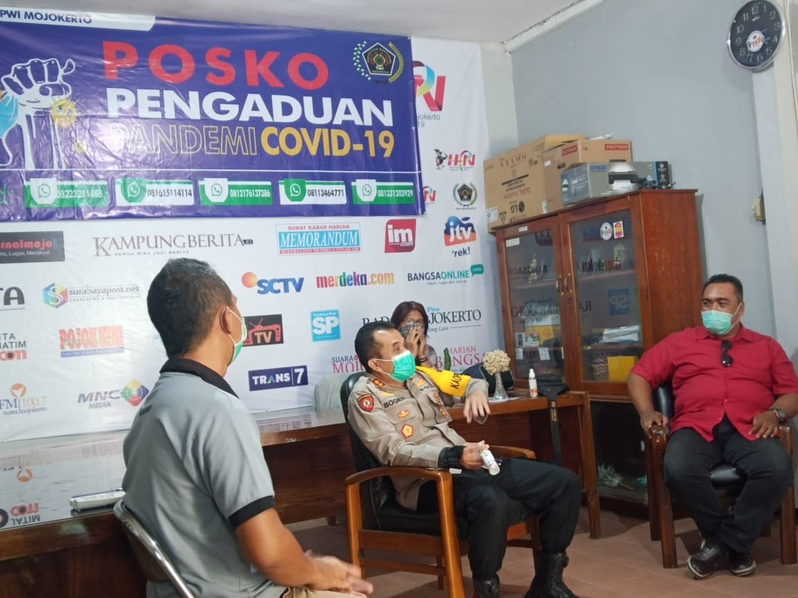 Kapolres datang bersama Kasatintel AKP Jupri di Posko Pengaduan Covid-19 PWI Mojokerto jalan Gajahmada 149 Kota Mojokerto.