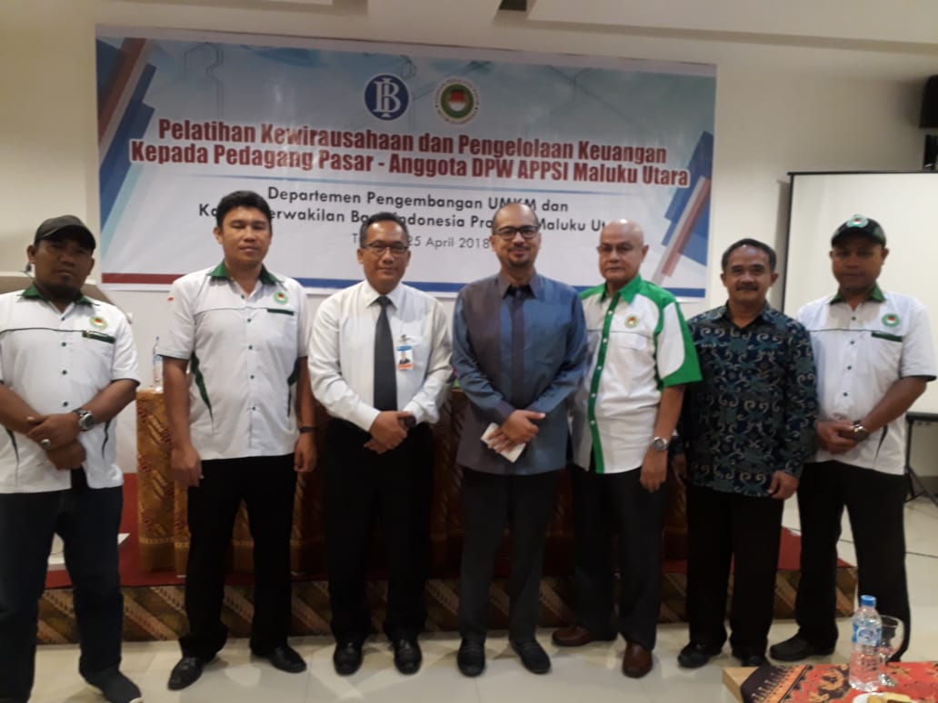 Sejumlah perwakilan pedagang pasar se – Maluku Utara yang tergabung dalam Asosiasi Pedagang Pasar Seluruh Indonesia (APPSI), Maluku Utara menggelar pelatihan. Pelatihan yang digelar oleh APPSI Maluku Utara yang bekerjasama dengan Bank Indonesia (BI) perwakilan Maluku Utara (Malut), bertujuan untuk meningkatkan pengelolaan keuangan dan meningkatkan kewirausahaan bagi pedagang.