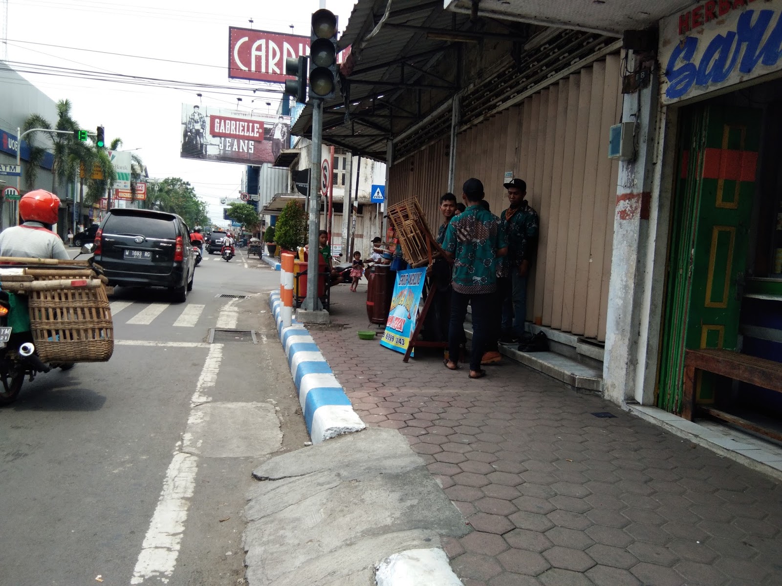 Senin 2/10/2017 pukul 10.00.wib di perempatan jalan majapahit kota mojokerto pengamen yang berasal dari kota tegal jawa tengah nampak menghibur dan terlihat profesional. Nampak para pejalan kaki serta pengendara kendaraan berhenti saat lampu merah memberikan saweran.