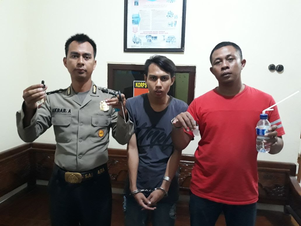 Dari tangan pelaku, petugas berhasil mengamankan barang bukti berupa 1botol liquid vapor, 1plastik klip berisi sabu, 1potong pecahan pipa kaca yang didalamnya ada skrop plastik, 1botol yang tutupnya sudah dilubangi dan ada sedotannya, 1buah korek api, 1buah gunting.