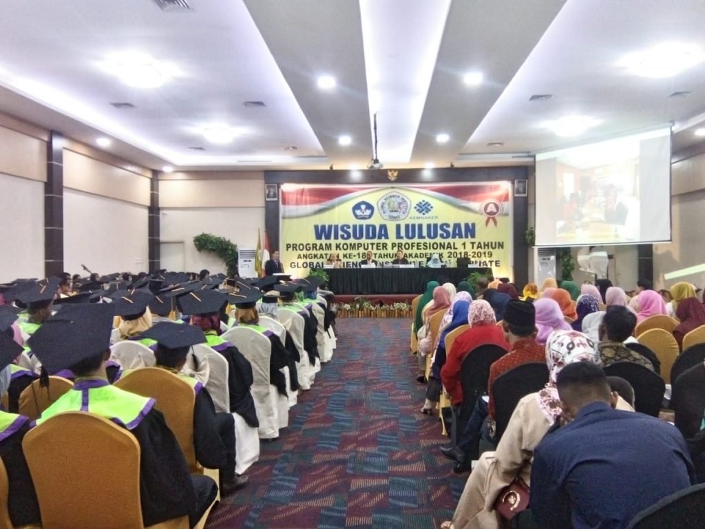 TERNATE – Sebanyak 122 lulusan program komputer profesional 1 tahun angkatan ke-18 tahun akademik 2018-2019 Global Science Institute (GSI) Ternate, Sabtu (28/9) gelar wisuda di Ball Room Muara Hotel Ternate lantai VI, Kelurahan Gamalama, Kecamatan Ternate Tengah, Kota Ternate.