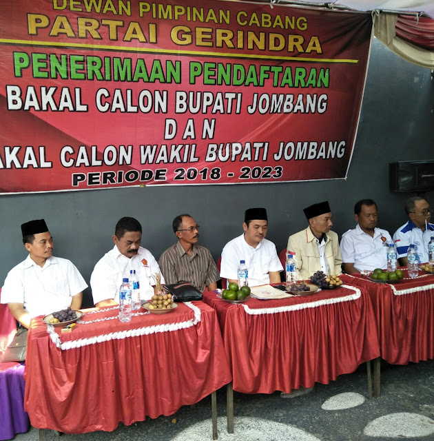 DPC Partai Gerindra Jombang, telah menerima pengembalian formulir pendaftaran Bacabup-Bacawabup Kabupaten Jombang, Jawa Timur.